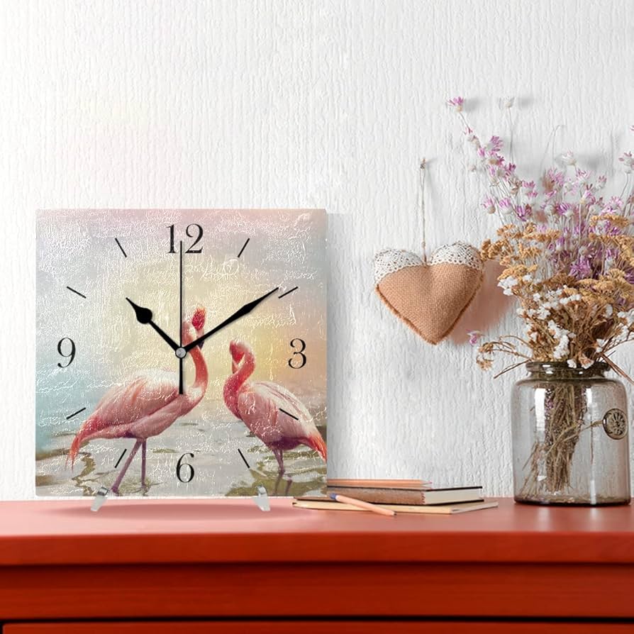 Amazon.com: MNSRUU Reloj de pared cuadrado, dos flamencos cerca
