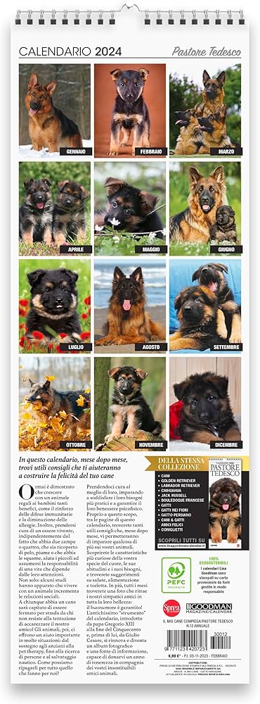 CALENDARIO PASSIONE CANE PASTORE TEDESCO 32X22 | eBay