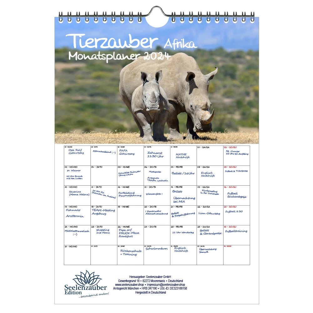 Tierzauber Afrika Planer DIN A4 Kalender für 2024 verschiedene